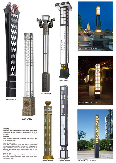 景觀燈分類:城市標(biāo)志性景觀燈、仿古景觀燈、鏤空現(xiàn)代景觀燈、不銹鋼景觀燈、藝術(shù)造型景觀燈等
